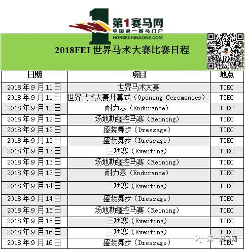 2018FEI世界马术运动会(WEG)将于2018年9月11日至23日在美国北卡罗来纳州Mill Spring的特赖恩(Tryon)国际马术中心(TIEC)举行,为期13天。届时,将有来自70个国家的马术明星同台竞技,向50万观众展示8个不同的马术项目。排名最高的团体和个人不仅会赢得荣誉称号和奖牌,还会捧走丰厚的赛事奖金。