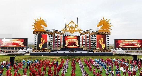 开幕式文艺晚会伴随千人马头琴合奏《万马奔腾》的雄壮乐曲声中展开,舞蹈《蹄印》、长调《走马》等精彩节目均突出展现了马文化的魅力。