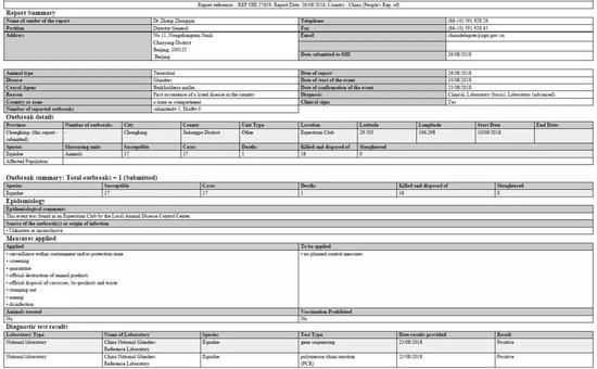 世界动物卫生组织(OIE)于8月27日通报了此次疫情——