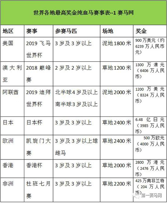 那么,其他地区的最高奖金纯血马赛事有哪些?跟着小编一起来看看吧。为方便大家感受奖金的数量,根据今日汇率,小编已经把奖金单位转成人民币。