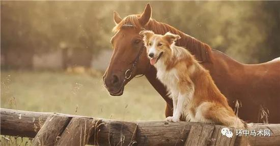 马儿在骑行时如果紧张不安,多种同伴动物会自带舒缓镇静的能力,因为朋友坚定的目光会给这些马一些积极地暗示。