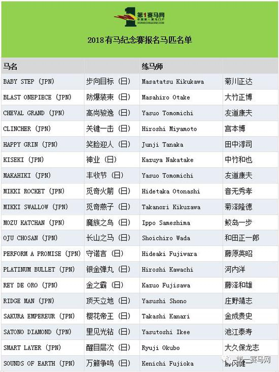 12月23日星期日,日本有马纪念赛将在中山竞马场点燃战火。有马纪念赛(2500米国际一级赛,供三岁以上马匹参加)是日本马季结束前的重头戏。