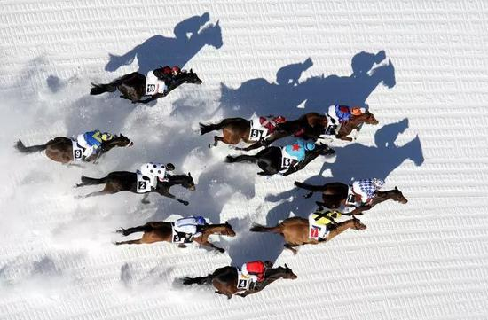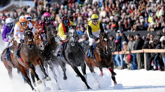 瑞士圣莫里茨雪上赛马大会(White Turf Racing St。 Moritz)是全世界最著名的雪地赛马赛事,也是世界上最值得参与的娱乐盛会。始创于1907年,圣莫里茨雪上赛马大会于每年在2月的连续三个星期日举办,来自欧洲各地的优良纯血赛马和国际知名骑师汇聚圣莫里茨。