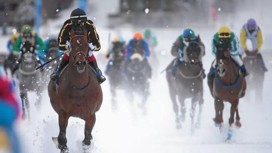 与其说瑞士的圣莫里茨(St.Moritz)是个马场,倒不如说它是一个冬季嘉年华会的会场。每年圣莫里茨都会举行三天雪地赛马,骑师和马匹在结冰的湖面赛道上竞逐,沿途欣赏Engadin山脉的冬日美景。每年这项冬季盛事,都会吸引超过35,000名观众参与其中,赛事包括速度、竞步,还有大受欢迎的马拉人滑雪赛事,在2700米高的雪山骋驰,是个与大自然结合的赛马活动。
