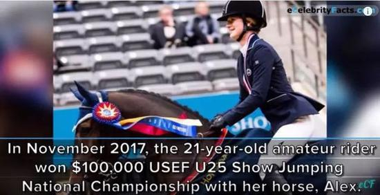 2017年,21岁的她就在马术比赛中获胜,赢得了100000美元奖金。
