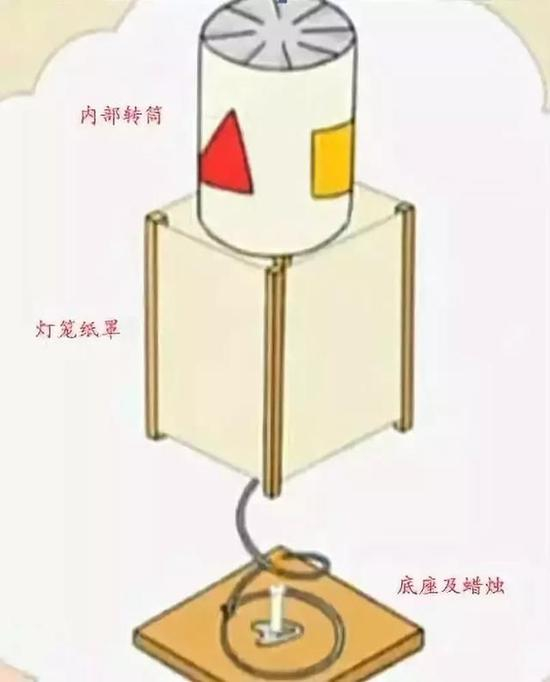 走马灯之所以能够旋转,是因为蜡烛点燃的时候,会把周围的空气加热。空气受热膨胀之后会不断向上走,也就是热空气上升。蜡烛周围的空气越来越少,这时灯罩下面的冷空气就会不断涌过来,补充这里的空气,补充过来的空气被加热后又再次上升。就这样灯罩里面的冷热空气不断循环,形成了一股向上的推动力量,这股向上的气流推动力带动纸风车转动,于是马灯也就是转动起来了。