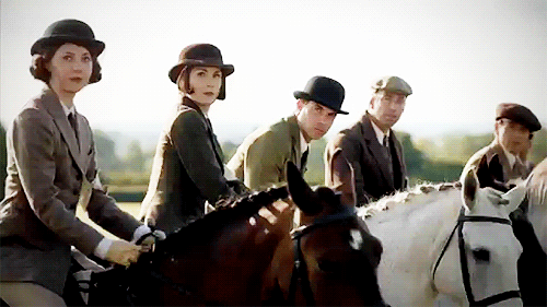 《唐顿庄园》的第一季中,大小姐玛丽还是用侧骑姿势。到了第六季,她穿着和男士一样的骑马服装,英姿煞爽地跨骑在马背上。