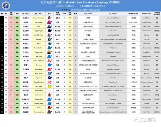 昨天(3月14日),国际赛马组织联盟(International Federation of Horseracing Authorities, IFHA)公布了世界最佳赛马排名(World‘s Best Racehorse Rankings, WBRR)。