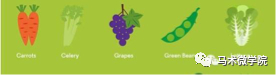 胡萝卜、芹菜、葡萄、四季豆、生菜