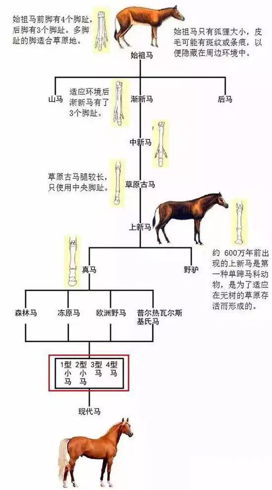 所有现代马的共同起源——真马起源于约100万年前的北美洲。在各次冰川期它们通过冻结的海面迁徙到欧亚大陆,形成了欧洲野马、普氏野马、冻原马和森林马四个原始品种。
