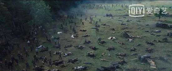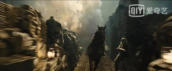 但最终,这一切都被无情的战火掩埋了。在一场战斗中,乔伊所在的部队遭到重创,几乎全军覆没。刚刚还是战火连天的战场,此刻只有军官们和战马的尸首,尸横遍野。虽然有有爆炸的画面,也没有特技加持,但是战争的残酷感和悲凉感还是扑面而来。