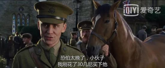 虽然这个结果让地主无话可说,但农场的收成依旧入不敷出,他们无法承担农场的租金。也就是在此时,一战爆发。艾尔伯特的父亲瞒着他,悄悄带乔伊去市集。很快,一位英俊的英国军官发现乔伊是一匹好马。这位军官就是我们的抖森,洛基大大。