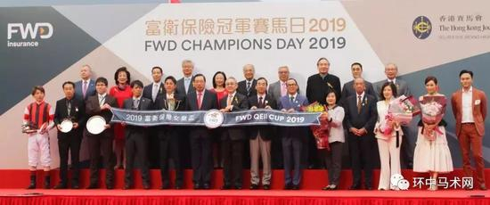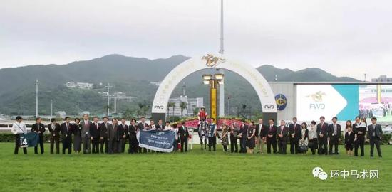 “胜出光采”的马主、练马师畠山吉宏及骑师松冈正海于赛后祝捷