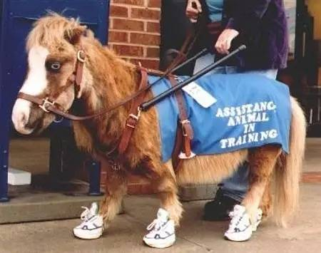 导盲马就是类似为服务盲人的导盲犬,它身材娇小,体重不足45公斤,与一只大型犬不相上下。而服务年限则可以超过30年,但在照顾与花费精力的情况下,费用也会更高。
