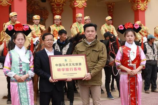 中国马文化运动旅游规划研究院乌扎拉院长向中国马镇授牌《中国马术文化旅游 研学旅行基地》