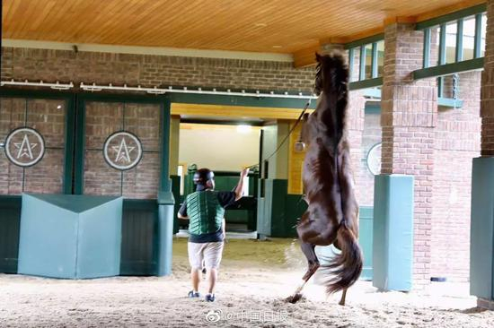 图:《中国日报》微博在享有“世界马都”之誉的列克星敦市,鄂尔多斯市政府官员和企业代表组成的马业代表团与市长Linda Gordon和马业界人士就双边合作进行了座谈,并参观了赢星育马场。赢星育马场和CHC杰士马主俱乐部联合所有的纯血赛马“正义”(Justify)去年夺得美国赛马三冠王,身价大涨,退役后以7500万美元售出为种公马。