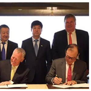 伊泰大漠马业董事长、目前全球马主排名高居第七位的CHC杰士马主俱乐部主席张祖德代表伊泰大漠马业与美国肯塔基坚兰联合公司签署合作备忘录,图:《中国日报》微博
