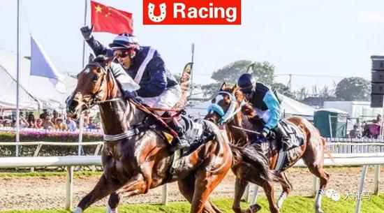 图:覃勇在巴巴多斯成为首位夺得国外商业赛事冠军的中国骑师