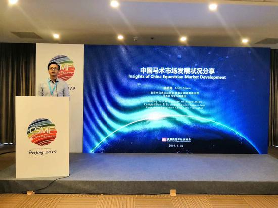 首先是北京马术运动协会赛事及商务高级主管、马术教育中心副主任沈明宪先生对中国马术发展状况进行了分享,主要从俱乐部开业时间、俱乐部拥有的功能区及设施、全国马术人口(会员)数量、职业马术教练情况、教学马相关福利情况、马术消费价格与教练费用、俱乐部最近三年的经营状况、俱乐部销售收入前十的项目、俱乐部各项支出占运营总成本的比例、马术行业经理人信心指数及面临挑战等12个方面分析了中国马术发展状况。