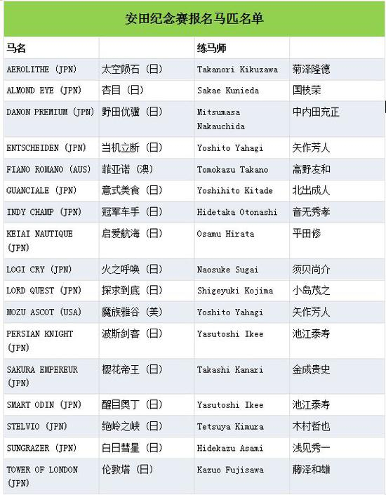 安田纪念赛(1600米一级赛,供三岁以上马匹参加)举办至今已是第六十九届,是日本春季最重要的一哩赛。本届赛事报名马匹名单中最瞩目的是“杏目”。“杏目”去年全胜日本雌马三冠大赛三关赛事,并在上仗一级赛迪拜草地大赛(1800米)中大败同场对手,凯旋回国。