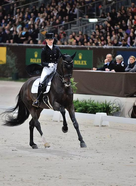 首先,骑手可以通过调整坐姿和控制身体,给马匹传递信号,辅助它们进行更自如地转换,正确使用“助推剂”。在进行“向下过渡”的时候,我们要从后方“推”动马匹,给予它们力量。当然,这些都需要建立在大量的练习之上,否则便都是纸上谈兵。通过训练,马匹可以了解骑手在每个过渡前的提示和帮助,反之,骑手也必须熟练掌握和应用这些。