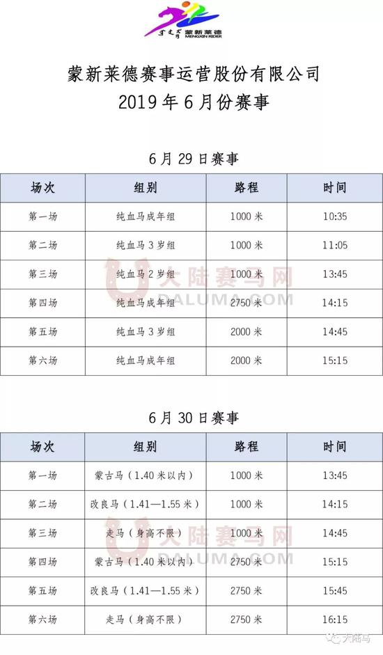 从6月29日、30日蒙新莱德的赛事安排可以看出,内蒙古的本土蒙古马、改良马、走马与纯血马赛事被列为了同等重要的地位。