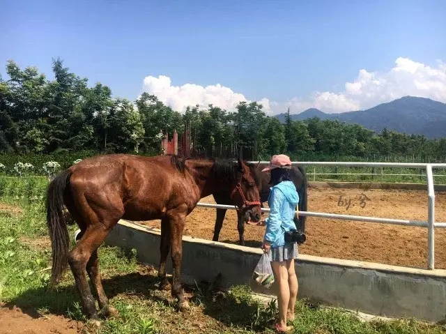 但师父说,马儿怕冷、惧风,沾了雨水的青草太凉,马儿吃了会闹肚子的。所以凉爽的清晨里总是我一个人循环与马厩的小路上和青草地之间,希望自己身上可以沾些雨后清新的味道给马儿们闻闻。不过马厩四周也是大片的土地,估计她们也能闻到,但这是我的心意,或许她们可以感受得到。