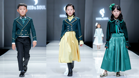 本季SEED&SOUL继续合作中国十佳设计师顾远渊,服装品类主要聚焦儿童马术服装、马术观礼礼服。服装款式设计遵循国际礼服规范,兼顾日间礼服和晚间礼服;毛型和丝质感礼服面料增强服装的正式感和高级感;黑白经典色、皇家蓝、勃艮第红、牛油果绿、浅薰衣草色、阳光黄、浅桃粉和品牌核心色彩——墨绿色是本季的主打色彩。