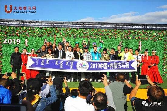 图:“大谦十一郎”在2019中国·内蒙古马赛夺冠时,“大谦世界明星马主团”明星马主现场领奖
