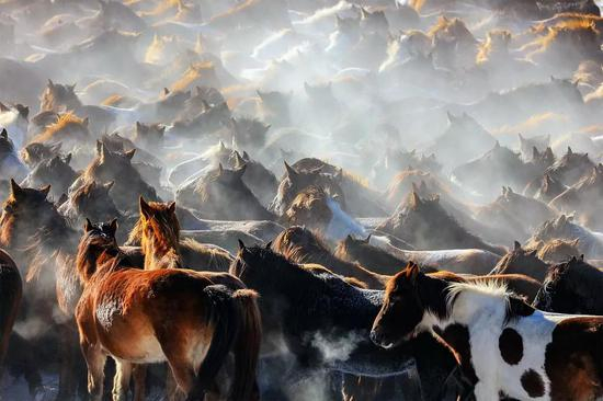 马的鬃毛,有的长达四五尺,当它奋鬃飞奔时,犹如彗星经地,壮观至极。
