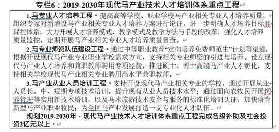 专栏6:2019-2030年现代马产业技术人才培训体系重点工程