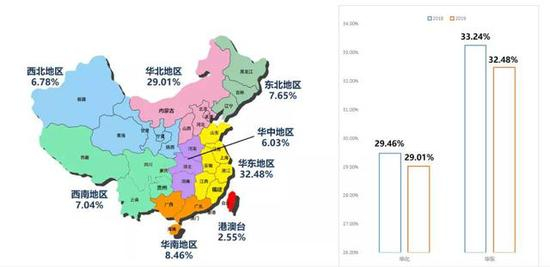 从区域分布来看,依然是华东、华北地区的马术俱乐部居多。华东地区32.48%,华北地区29.01%,这两个地区占全国马术俱乐部总比例61.49%,超过一半以上。与此同时,华东、华北地区相较于去年所占比例略有下降。