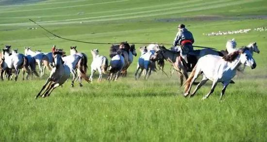 蒙古人养马和世界上许多民族不同,他们不建马厩,而是让马在草原上自由奔跑,并让它们按照自然习性组织家庭,四处迁徙。