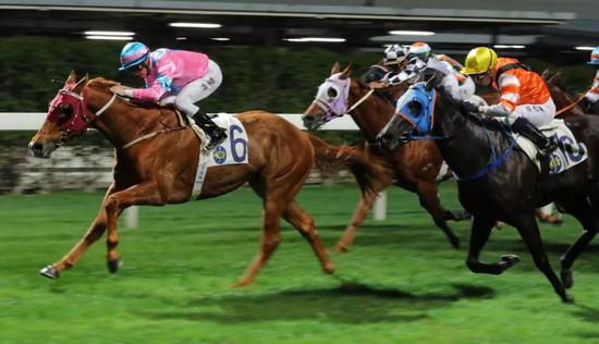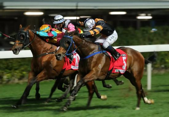 新胜马‘胜感’今场继续放头,近况大勇的‘明骏之星’今季首次配上莫雷拉,马匹入直路发力,虽与‘胜利风范’多次挤碰,但仍一度成功突围,然而‘永同欢欣’加速力什强,两驹直路斗得激烈,最终后驹以半个马位赢马,‘极速王’赶过直路上只能维持同速的‘胜感’跑第三。
