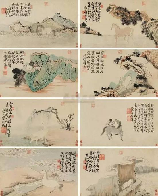 石涛,晚清著名山水画家,偶作马图,不同凡响。石涛画马,师法李公麟、赵孟頫,善以精圆线条勾画马体。