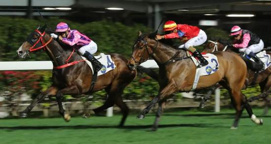 ‘红裤日’起步应声弹出并一直领放,纵使沿途受‘皓月千里’及‘遨游之星’等多驹挑战,但仍难以越其雷池半步。至最后直路,‘红裤日’仍然以两个多马位领先,但‘喜胜驹’沿中档长驱直进,终点前成功力压‘红裤日’先过终点,方嘉柏马房及骑师何泽尧合作取得本日第二捷。