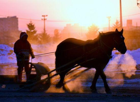 据了解,该赛马比赛为体重约为1吨的赛马拉着重量最大为1吨的铁质雪橇,在200米长且中途设有2处障碍物的直线赛道上进行比赛。