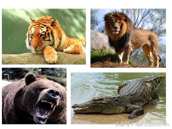 马是食肉动物的猎物。食肉动物是老虎、狮子、鳄鱼和熊之类的动物。