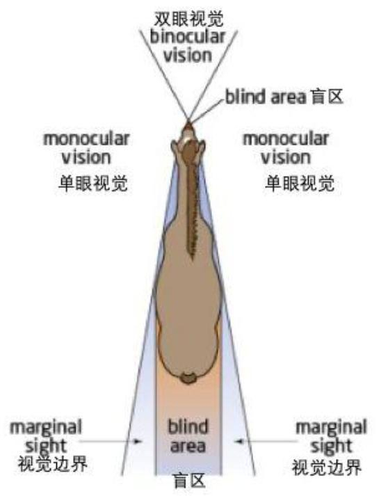 相信开过车的人都会有一个感觉,就是后视镜里面的物体看着比实际要远很多,其实马的眼睛就拥有类似汽车的后视镜的功能,如下图(其实马为什么喜欢后踢腿,也是因为恐惧的原因,马是一种安全感很差的动物,当它看不到后面的时候就会没有安全感,所以马也就学会了向后踢腿)