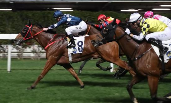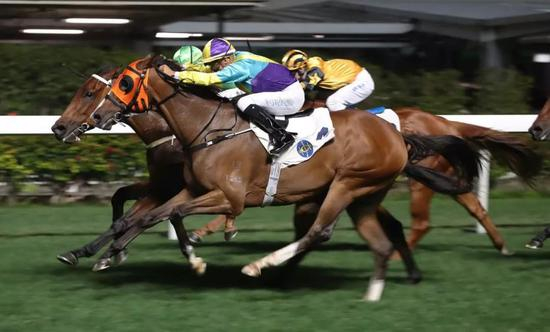 全场聚焦于已经取得两捷的吕健威及何泽尧能否借勇锐的‘非凡品味’再下一城。而人马亦未有令粉丝失望,自起步后一直领放马群,途中并无对手能稍稍逼近,入直路马匹再度加速,直奔终点轻胜两个马位,骑练于夜赛连中三元。 ‘高耀智星’及‘飞天剑’则分列二、三。