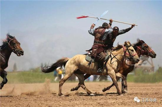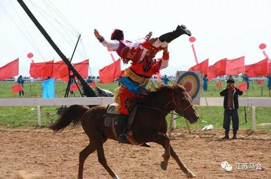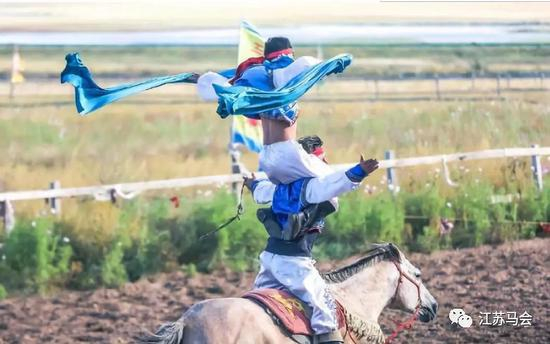 马术表演展现了各种高难度动作让人惊叹不已,自小在马背上长大的他们,奔驰在苍茫的草原上,展现着属于他们的豪迈。