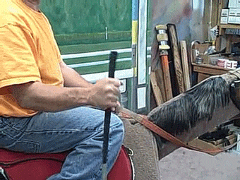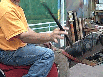 挥鞭时需从反手握鞭转化到正手握鞭,正手握鞭时才可以有效鞭策马匹。改变握鞭姿势过程分为三步。将鞭向上挥动,顺势将握柄夹在食指和中指之间,用虎口夹住。