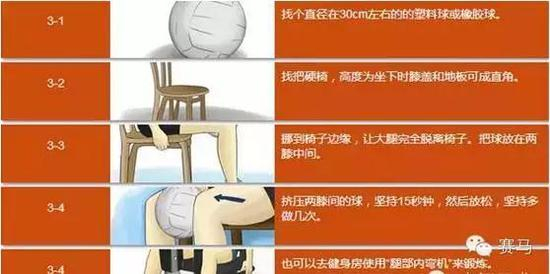 这是加强马背上大腿夹紧力的好方法,可增强大腿内侧肌肉力量。如果夹球持续15秒很轻松,可以加到20秒、30秒或者更长时间。