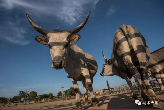 灰色的马雷玛纳牛个头硕大,号称欧洲最早被驯化的家畜之一。雄性更加魁梧,体重近一吨,又大又尖的角威猛异常。
