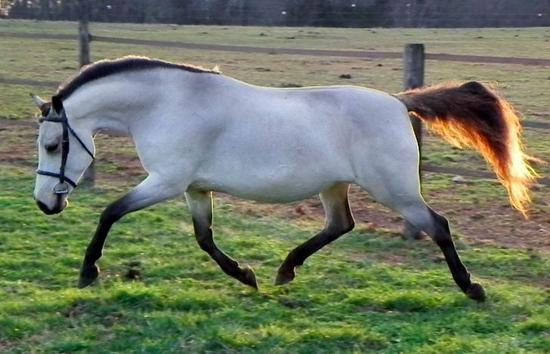 沙色基因使得马有着深色的底层被毛,看起来呈现蓝色,头部和腿部一般不受影响。