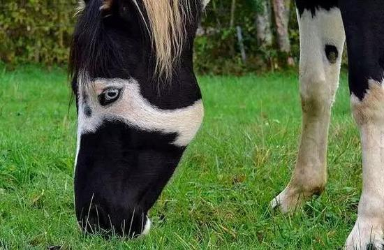 这匹马有着对比鲜明的漂亮被毛,但你仔细观察,他身上居然写着“horse”!哈哈哈,是上帝给他的注释吗?