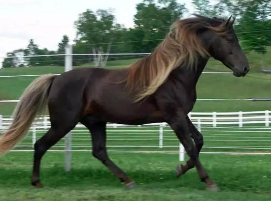 通常亚麻色的马是淡黄色的,但巧克力亚麻色更加浓郁,鬃尾和被毛的对比很是吸引人,有代表性的品种是落基山小型马。