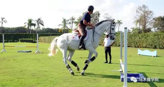 很小的跳跃就足以让你的马比平时跑步时稍微多用些后肢。在组合跳跃的时候有耐心,让你的身体以轻松的姿态保持在同一个位置,让马起跳时靠近你的胸部,而不是骑手做摇摆动作。