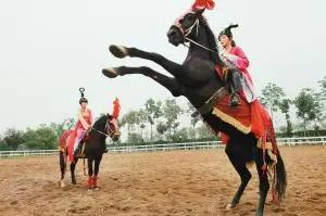 早在三国时,曹操的儿子曹植物便是一个狂热的“舞马”迷。他曾向哥哥进贡过一匹心爱的大宛马,这匹马经过他的精心培养,“教令习拜,今辄已能与鼓节相应”,可以踩着鼓点进行跳跃、飞转,翩翩起舞,不断变化步法,极具艺术性和观赏性。