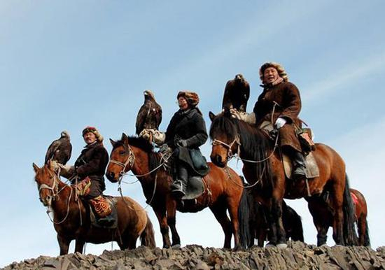 鹰猎已有千年传统,鹰猎者们依靠自己亲手喂养大的巨型“金鹰”捕猎为生。抵达边陲小镇乌列盖绝非易事。短短三天中,车胎扎破了三次,还有一次几近灾难:一辆汽车从小山丘上飞速冲下来。相比之下,骑马显得温和多了。